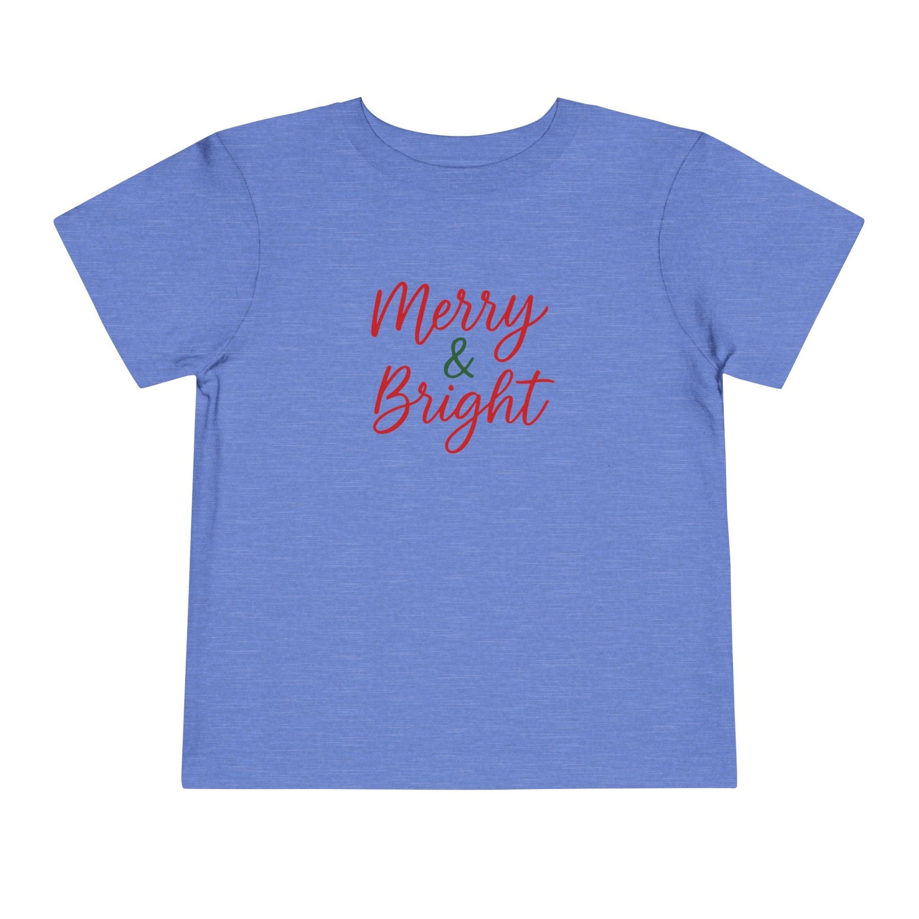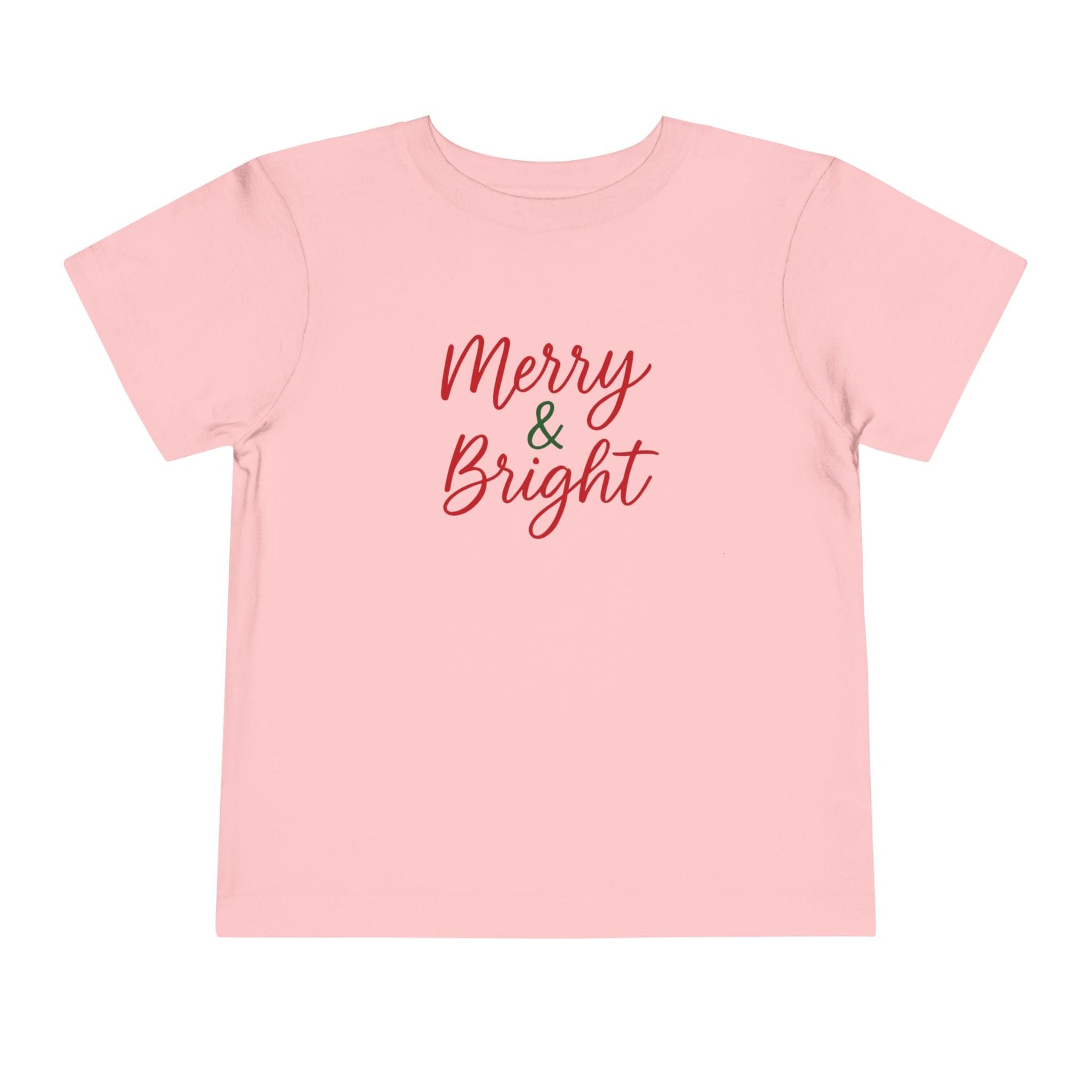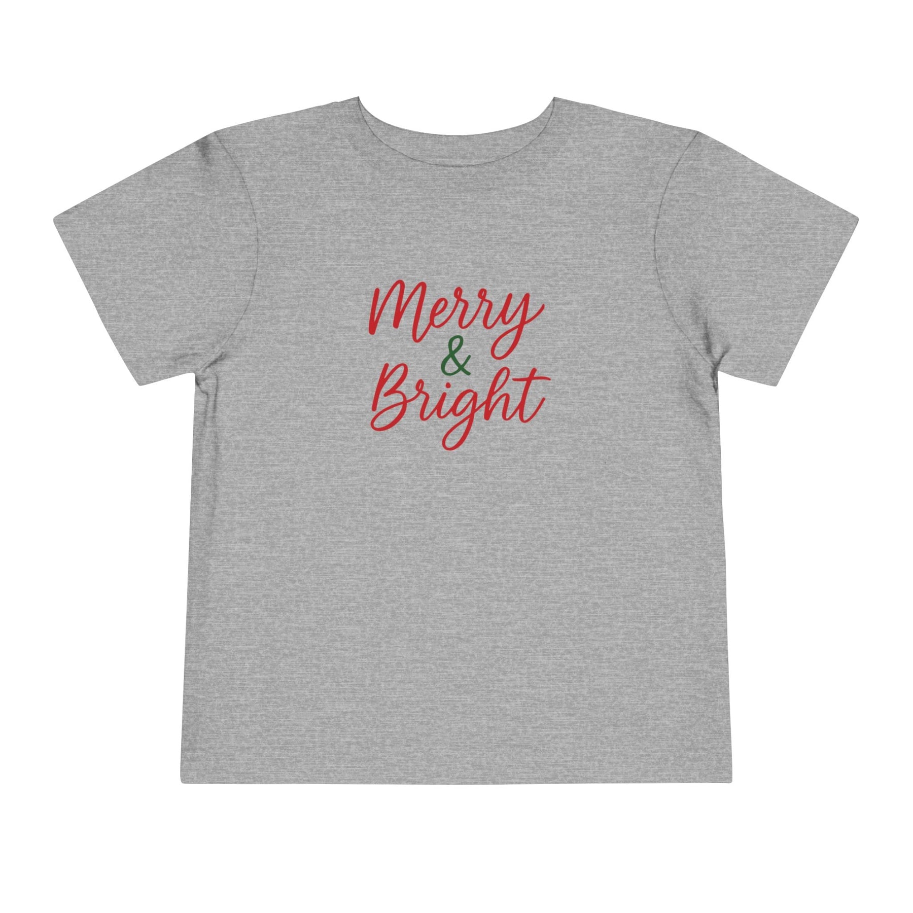 This Merry & Bright toddler tee features a classic holiday script in festive red and green for a simple, cheerful Christmas look. Perfect for family photos, holiday parties, and everyday December memories. A cute seasonal graphic toddlers love.